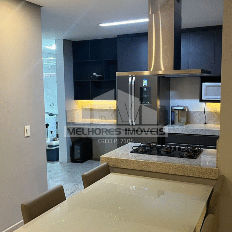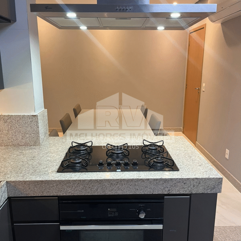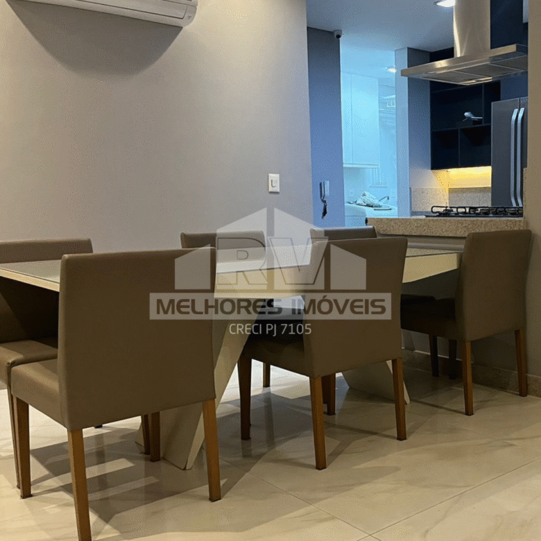 Apartamento com 120m², totalmente mobiliado e climatizado, composto por 3 quartos (sendo 1 suíte), sala ampla, cozinha equipada e acabamentos de alto padrão.